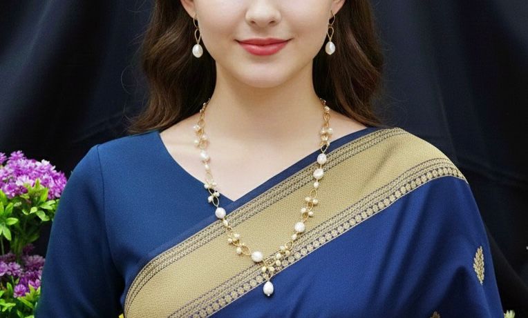 This set is an excellent choice for a woman who appreciates designer jewelry that is both classic and modern. It represents high quality gold plated jewelry in Bangladesh, combining the timeless appeal of natural pearls with a chic, current aesthetic.