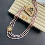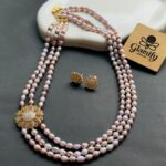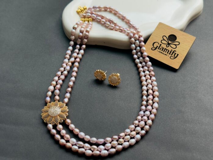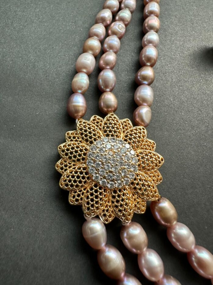 3 Layer AAA Grade Purple Freshwater Rice Pearl Necklace with Floral Designer Pendant – 6MM | 18 Inch