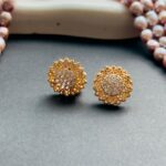 At the center, the necklace features a stunning gold-tone floral designer pendant. The pendant is intricately crafted in a blooming flower pattern and highlighted with fine micro stone detailing at the center, adding brilliance and festive charm. This statement pendant enhances the beauty of the layered pearls and creates a perfect focal point.