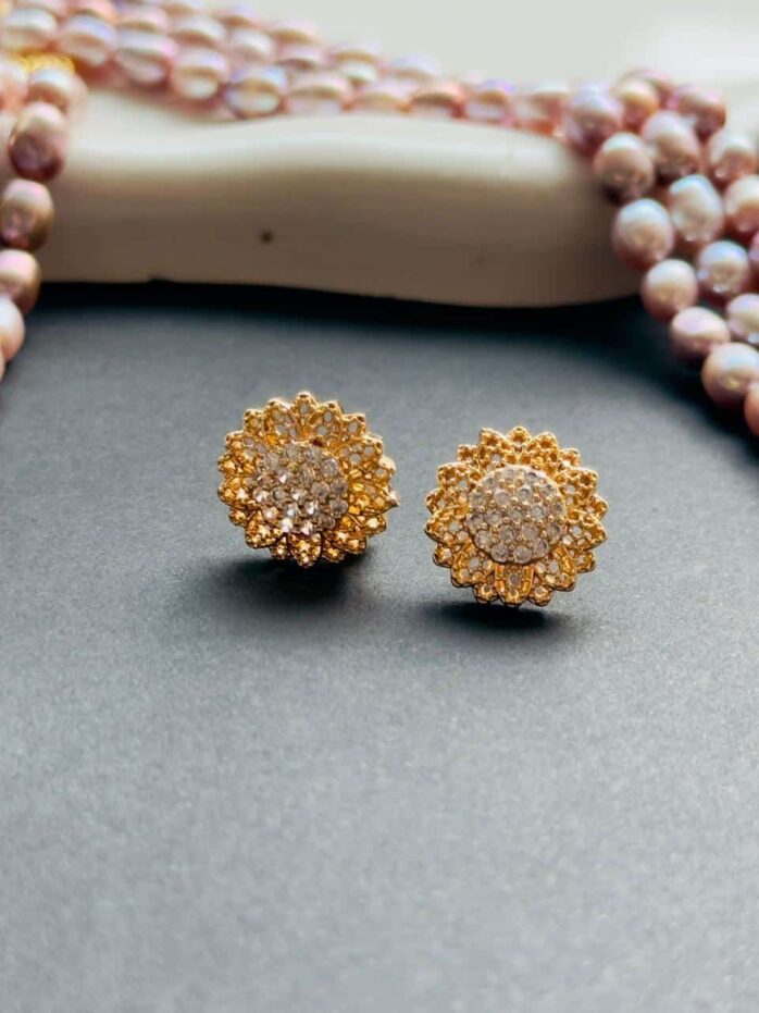 লকেট ডিটেইল: প্রিমিয়াম গোল্ড-টোন ফ্লোরাল ডিজাইনার পেন্ডেন্ট, যাতে রয়েছে হাই-শাইন মাইক্রো স্টোন সেটিংস।