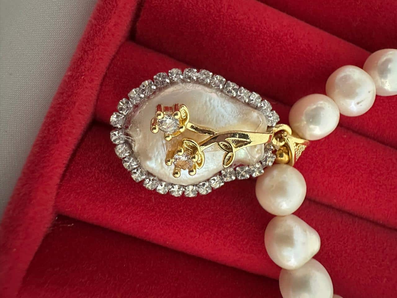 স্মুদ মাদার পার্ল ফিনিশ: প্রতিটি মুক্তার উপরিভাগ অত্যন্ত মসৃণ এবং এতে রয়েছে চমৎকার প্রাকৃতিক উজ্জ্বলতা, যা গয়নাটিতে একটি প্রিমিয়াম লাক্সারি টাচ যোগ করে।