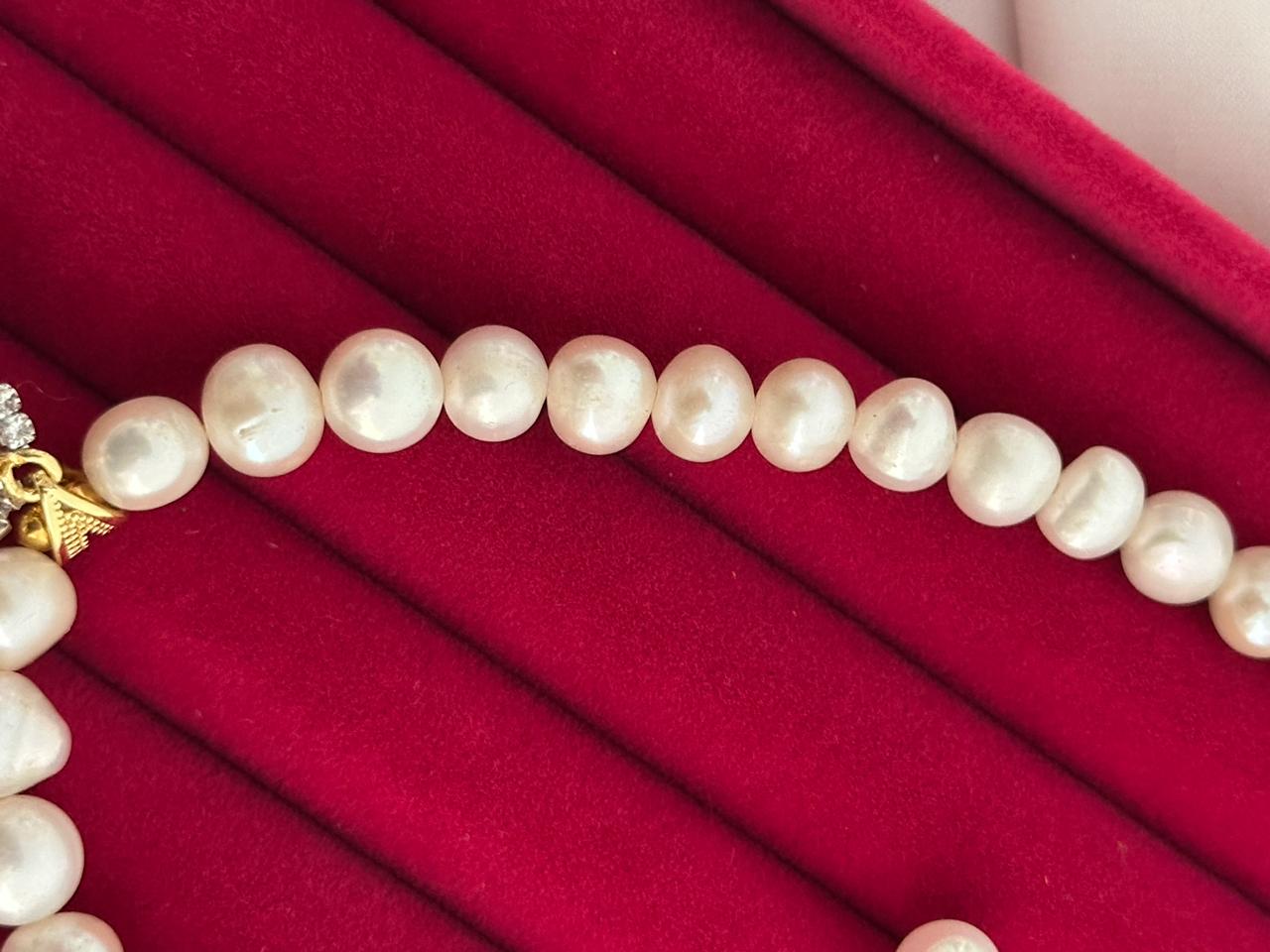 Each pearl features a smooth mother pearl finish that enhances its natural glow and luxurious appearance. The uniform 8mm pearl size creates a bold yet refined look, making it ideal for both formal and everyday styling.