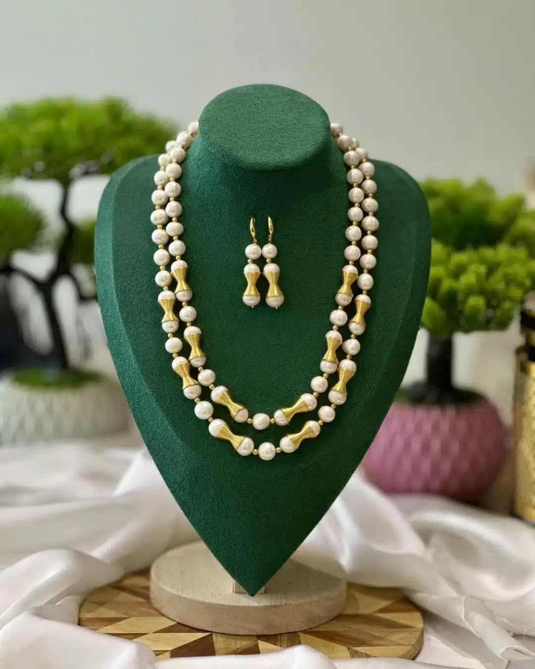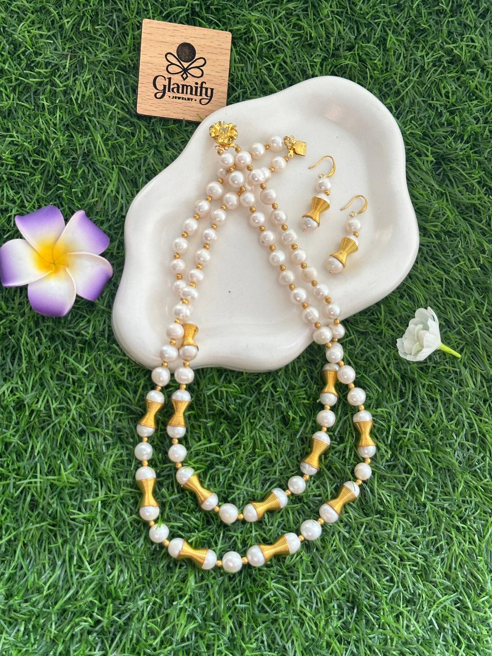 Whether you’re dressing up for a family celebration, a festive event, or simply want to carry a confident glow at work—this necklace set will be your go-to choice. The natural pearls radiate purity and charm, while the 2-layer design adds depth and richness to your overall look.