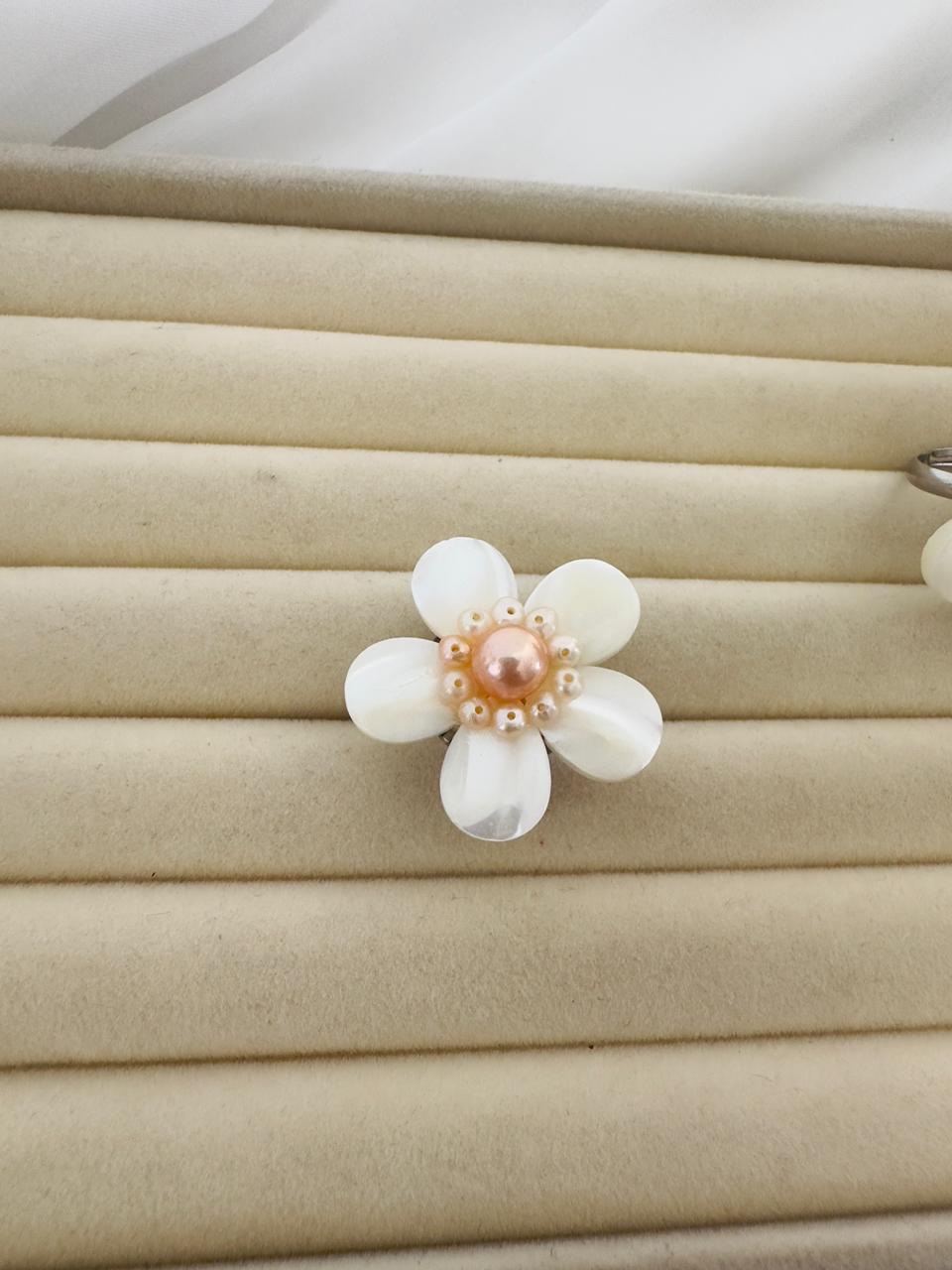 This AAA Grade Flower Shell Pearl Ring is a graceful blend of elegance and craftsmanship. Designed in a beautiful flower shape, the ring features smooth shell pearl petals that create a soft, luminous look.