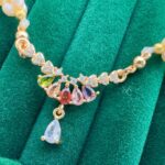The highlight of this necklace is its premium gold-tone designer locket featuring multicolor crystal stones arranged in a graceful pattern, finished with a delicate drop stone for added charm. The adjustable chain ensures a perfect and secure fit for different neck sizes.