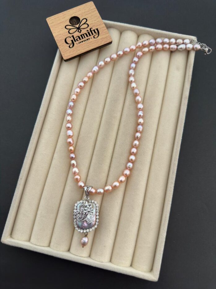 Upgrade your jewelry collection with this classy pink pearl necklace, exclusively available at Glamifybd.com.