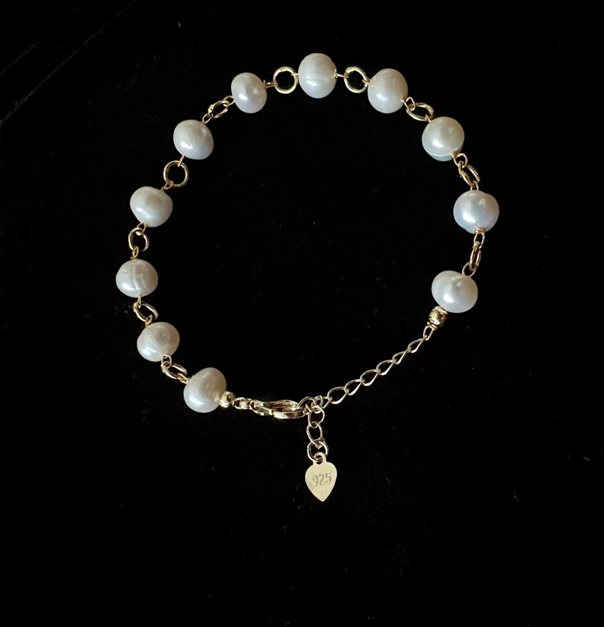 Adjustable White Pearl Bracelet | 925 Silver | 7mm Freshwater