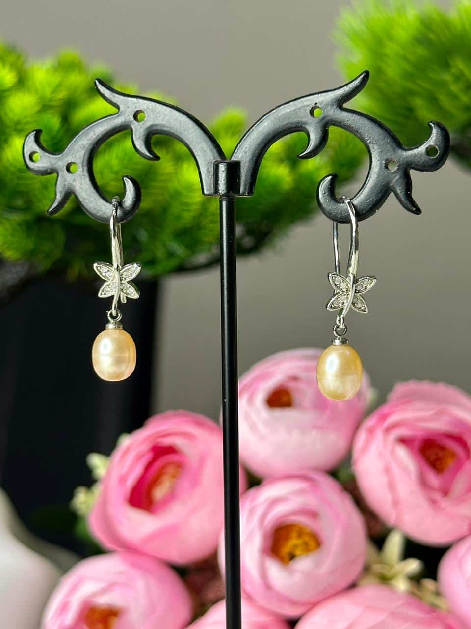 এই ইয়াররিংয়ে অরিজিনাল ফ্রেশওয়াটার পার্ল ব্যবহার করা হয়েছে, রঙ ন্যাচারাল পিঙ্ক বা পিচি-পিঙ্ক, ৯২৫ স্টার্লিং সিলভার হুক এবং মাইক্রো-পেভ বাটারফ্লাই বা ফ্লোরাল চার্ম (CZ/স্টোন স্টাডেড) যুক্ত। এলিগ্যান্ট ড্রপ স্টাইল, দৈনন্দিন, অফিস বা ফরমাল পোশাকের সাথে ব্যবহারযোগ্য।