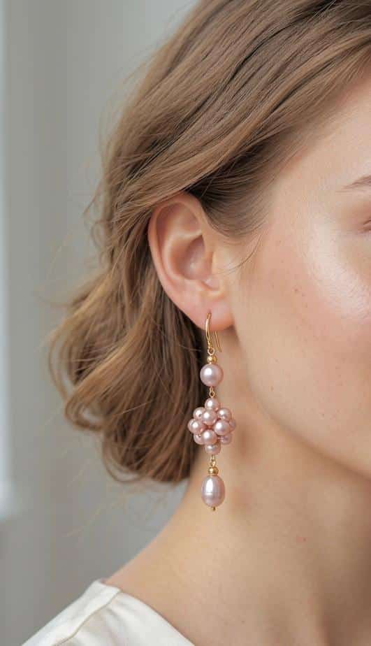 গোলাপি মুক্তার এই দুলগুলো দিয়ে একটা ‘মিনিমালিস্ট’ লুক তৈরি করুন। আপনি যদি দিনের বেলা কোনো অনুষ্ঠানে হালকা রঙের সুতি বা জামদানি শাড়ি পরেন, তবে এই দুলগুলো আপনার সাজে একটা রুচিশীল আভিজাত্য যোগ করবে।
