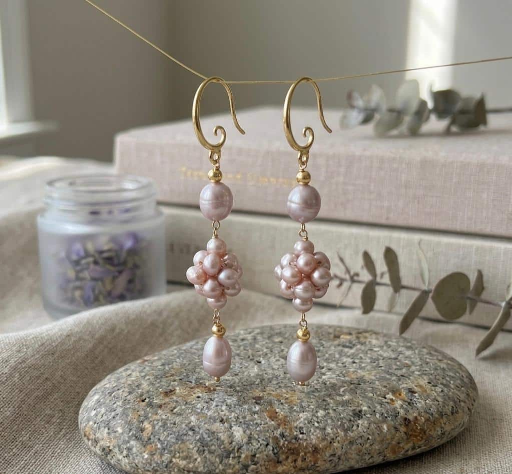 The gentle pink tone of the pearls pairs perfectly with the 14K gold plated finish, creating a warm and graceful look. Lightweight and comfortable, these earrings are ideal for everyday wear while still polished enough for special occasions.