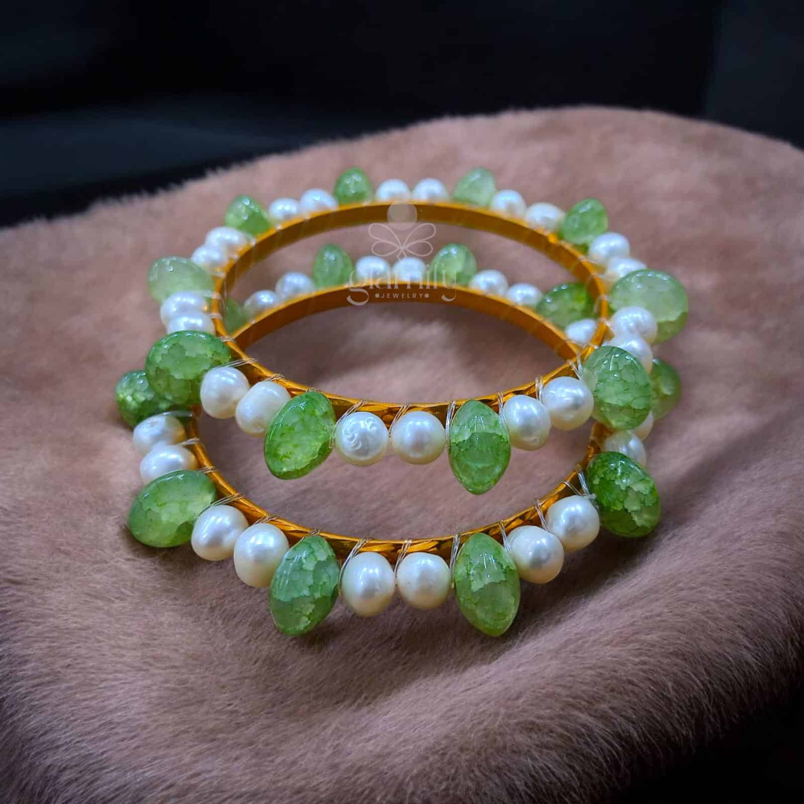 Freshwater Pearl & Panna Churi | AAA Grade Pearl Bangle Set