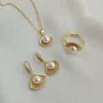 The focal point of this set is the lustrous Freshwater Pearl Pendant with Ring & Earring Set, which exudes a radiant glow and adds a touch of classic charm. Each freshwater pearl is carefully handpicked for its exceptional quality, ensuring a flawless and iridescent finish. The pendant is delicately suspended from a sterling silver chain. Enhancing its grace and allowing it to rest gracefully against the wearer’s décolletage.