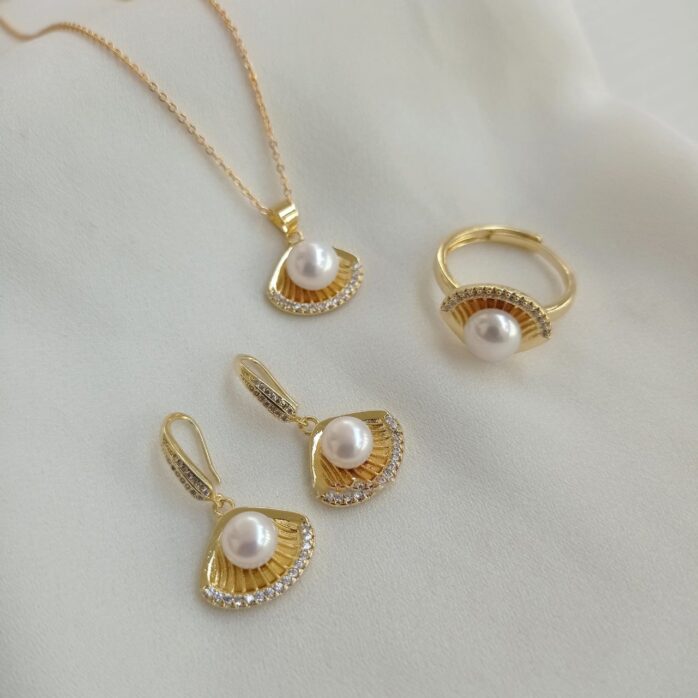 Introducing our exquisite Freshwater Pearl Pendant with Ring & Earring Set – a timeless ensemble that effortlessly combines elegance with natural beauty.