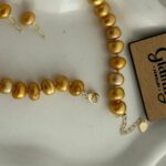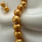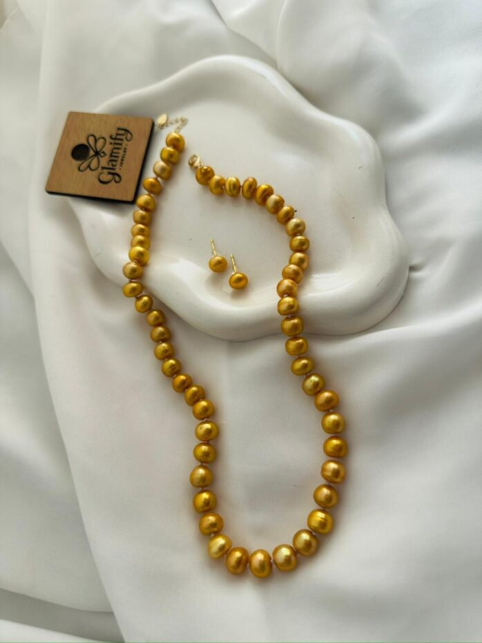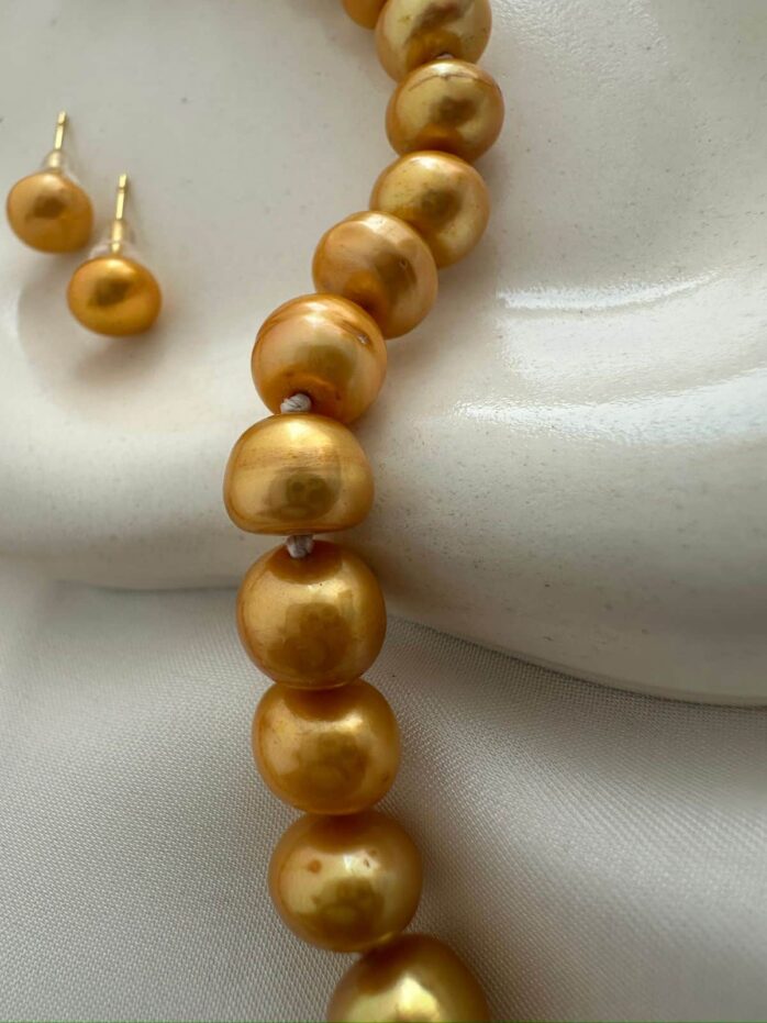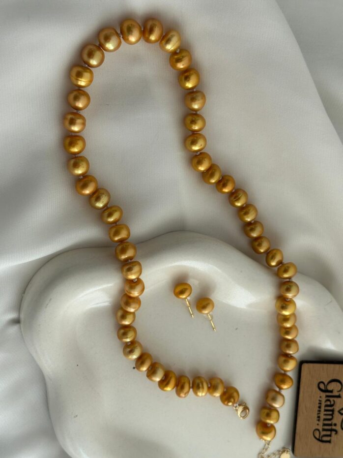 Golden 9mm Button Pearl Necklace – 17 Inch Premium Pearl Necklace Set for Women