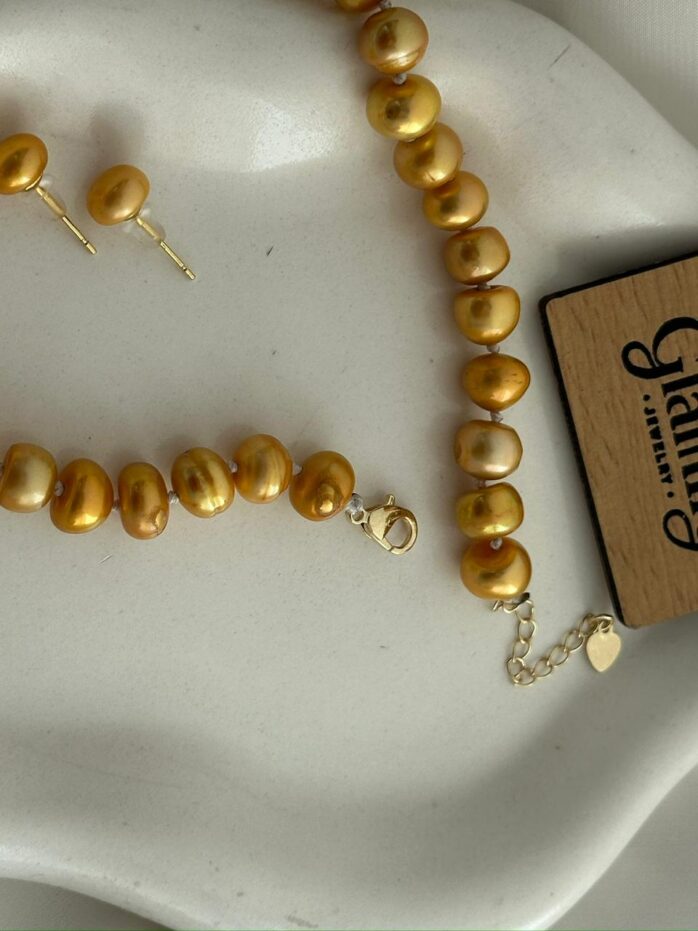• পার্ল টাইপ: ৯ মিমি রিচ গোল্ডেন বাটন পার্ল.