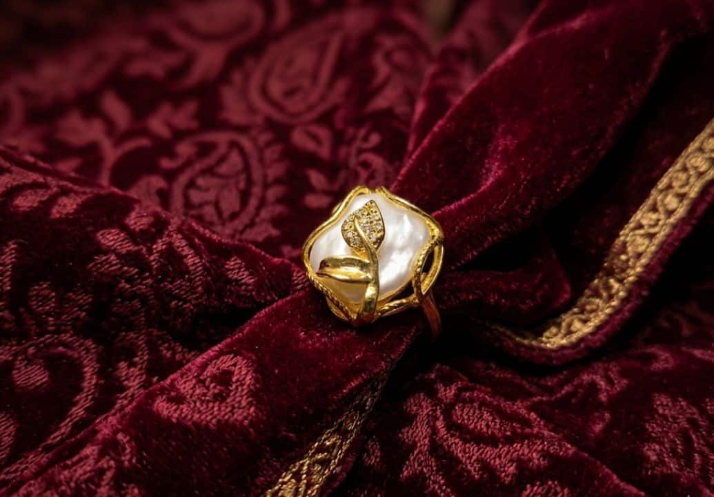 • প্রাকৃতিক মাদার অফ পার্ল: আংটিটির কেন্দ্রে রয়েছে একটি প্রিমিয়াম মাদার অফ পার্ল, যার স্নিগ্ধ সাদা আভা এবং প্রাকৃতিক উজ্জ্বলতা আপনার সাজে এক রাজকীয় আভিজাত্য নিয়ে আসবে.