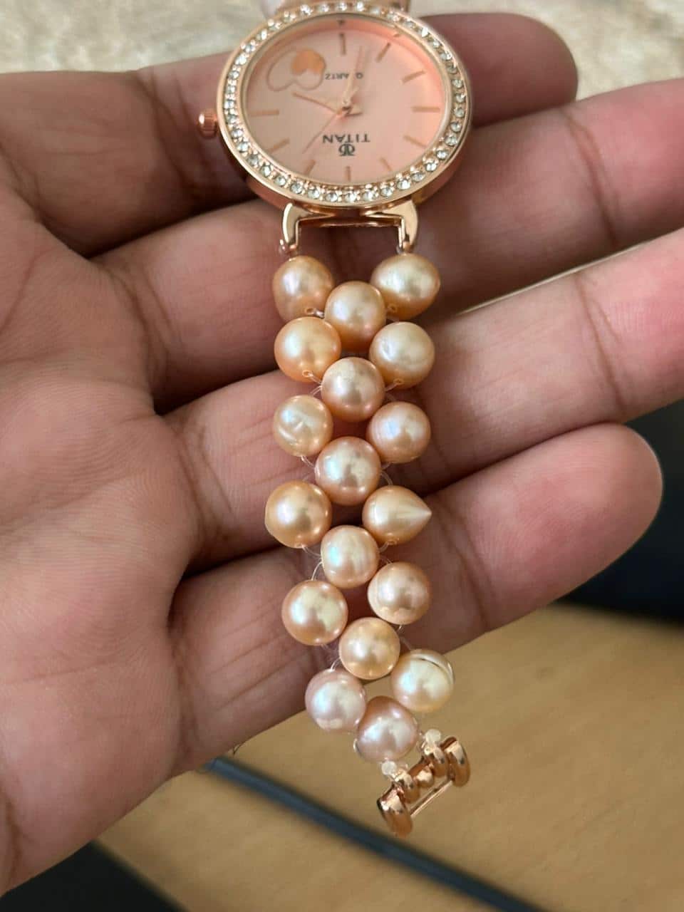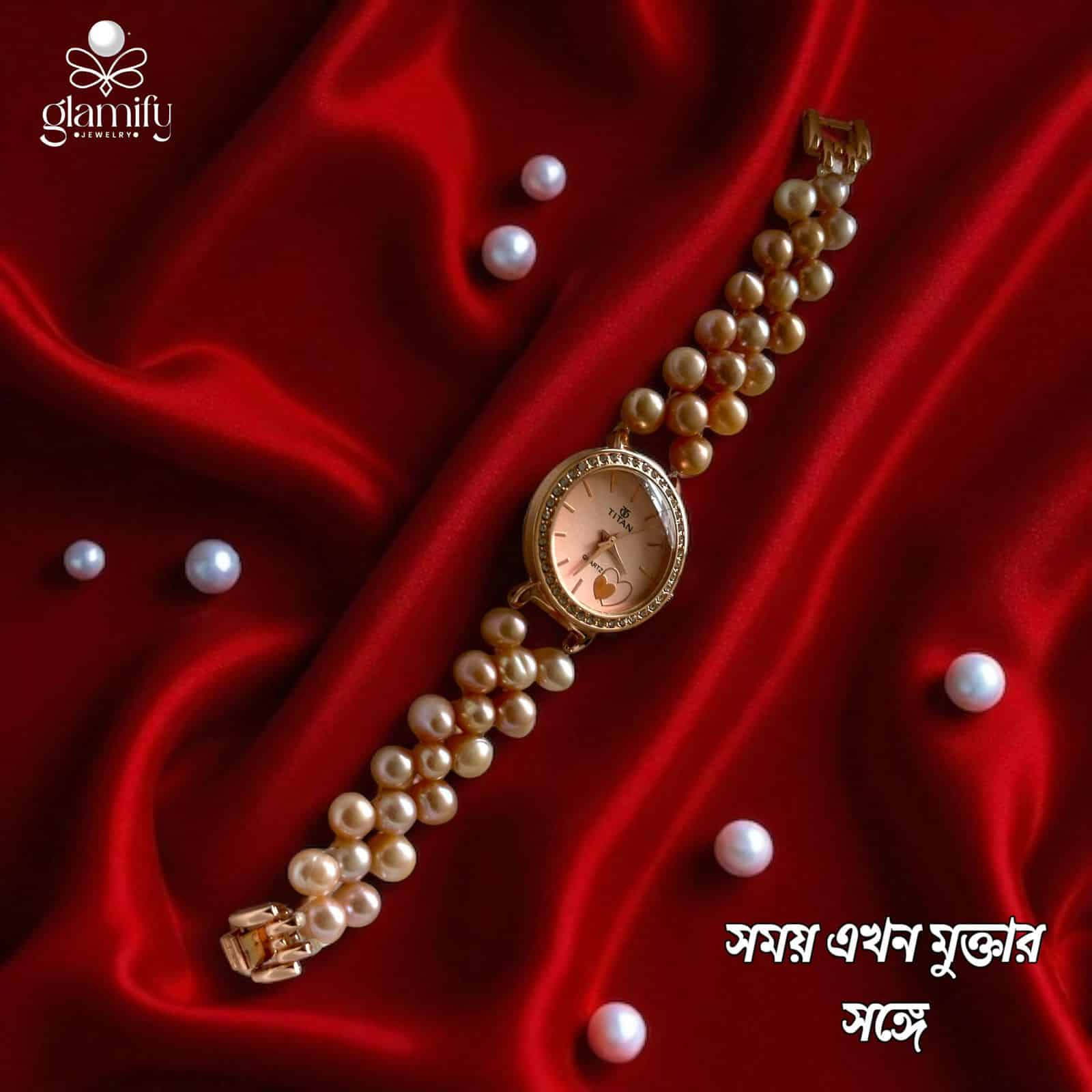 Watch Type: Women’s analog wristwatch with pearl bracelet band