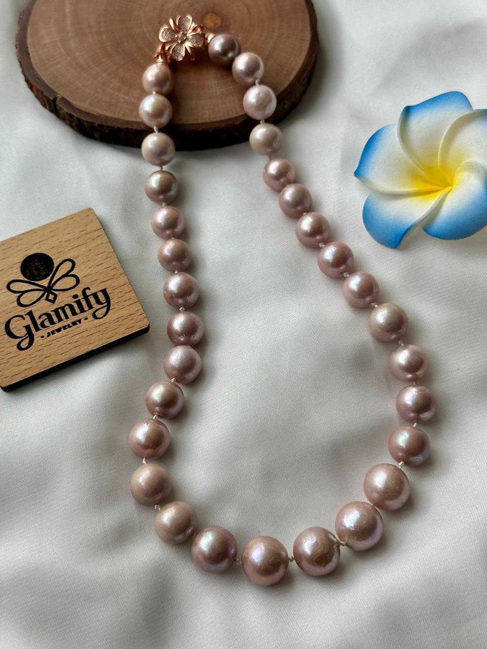 Dazzling 12-14mm Original Purple Sea Pearl Necklace. AAAA Quality, 17.5-18 inch length, secured with a beautiful Gold/Silver Plated clasp. Shop now at GlamifyBD.