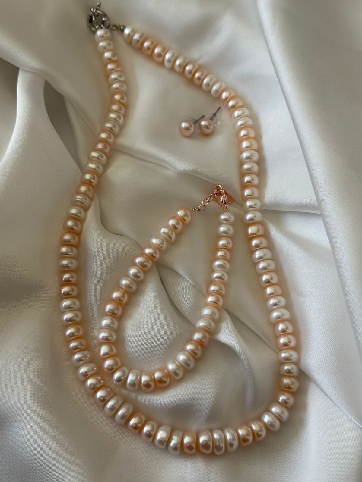 পরিপূর্ণ ৩-পিস সেট: এই সেটটিতে পাচ্ছেন একটি নেকলেস, একটি ম্যাচিং ব্রেসলেট এবং এক জোড়া ক্লাসিক পার্ল স্টাড ইয়াররিংস।