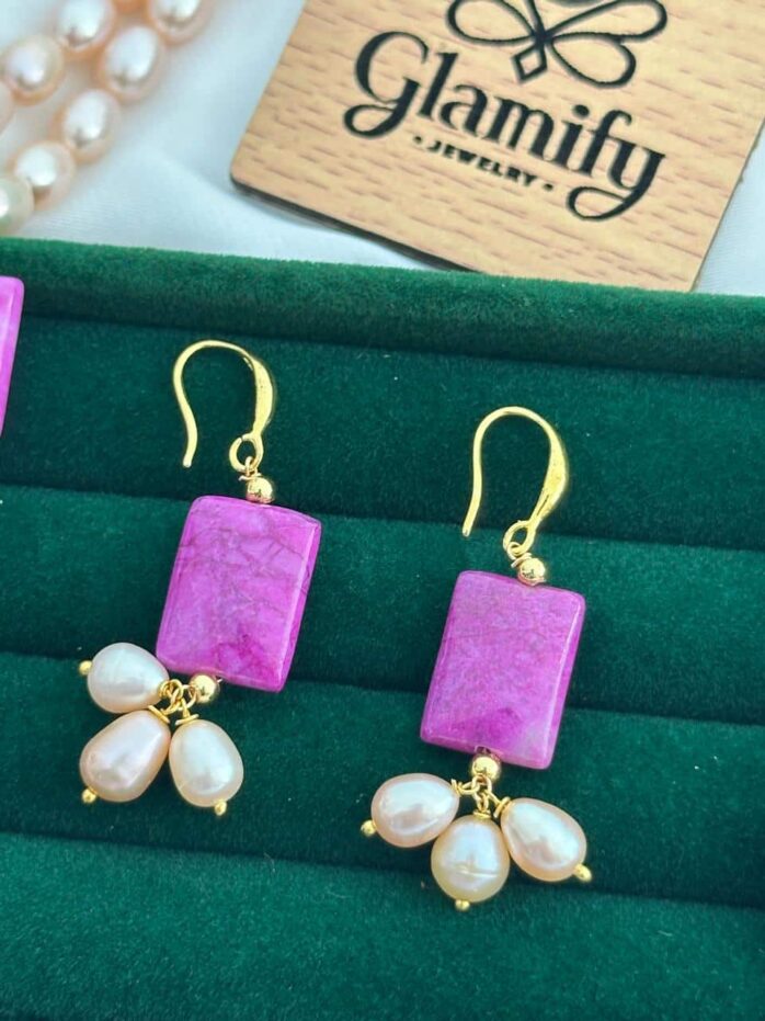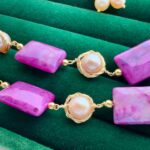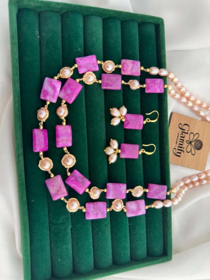 Make a bold and elegant style statement with this stunning Pink/Magenta Agate Stone & Rice Pearl Double Layer Necklace Set. Beautifully designed for women who love unique and eye-catching jewelry, this piece combines the richness of natural agate stones with the timeless charm of AAAA grade freshwater rice pearls.