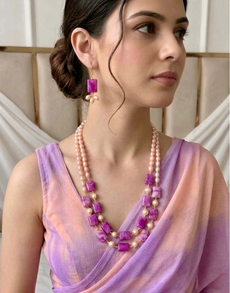 If you’re looking for a statement pearl necklace set in Bangladesh that stands out with color and elegance, this double-layer design is a perfect choice.