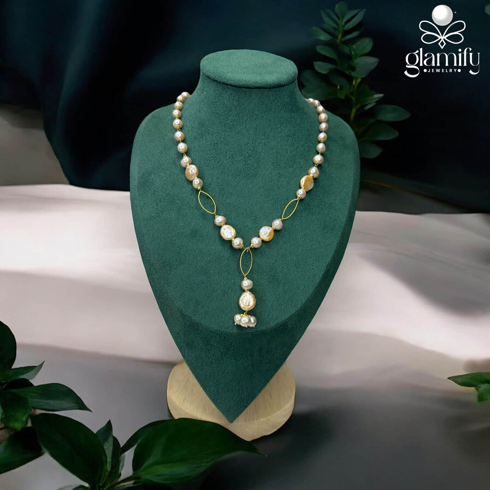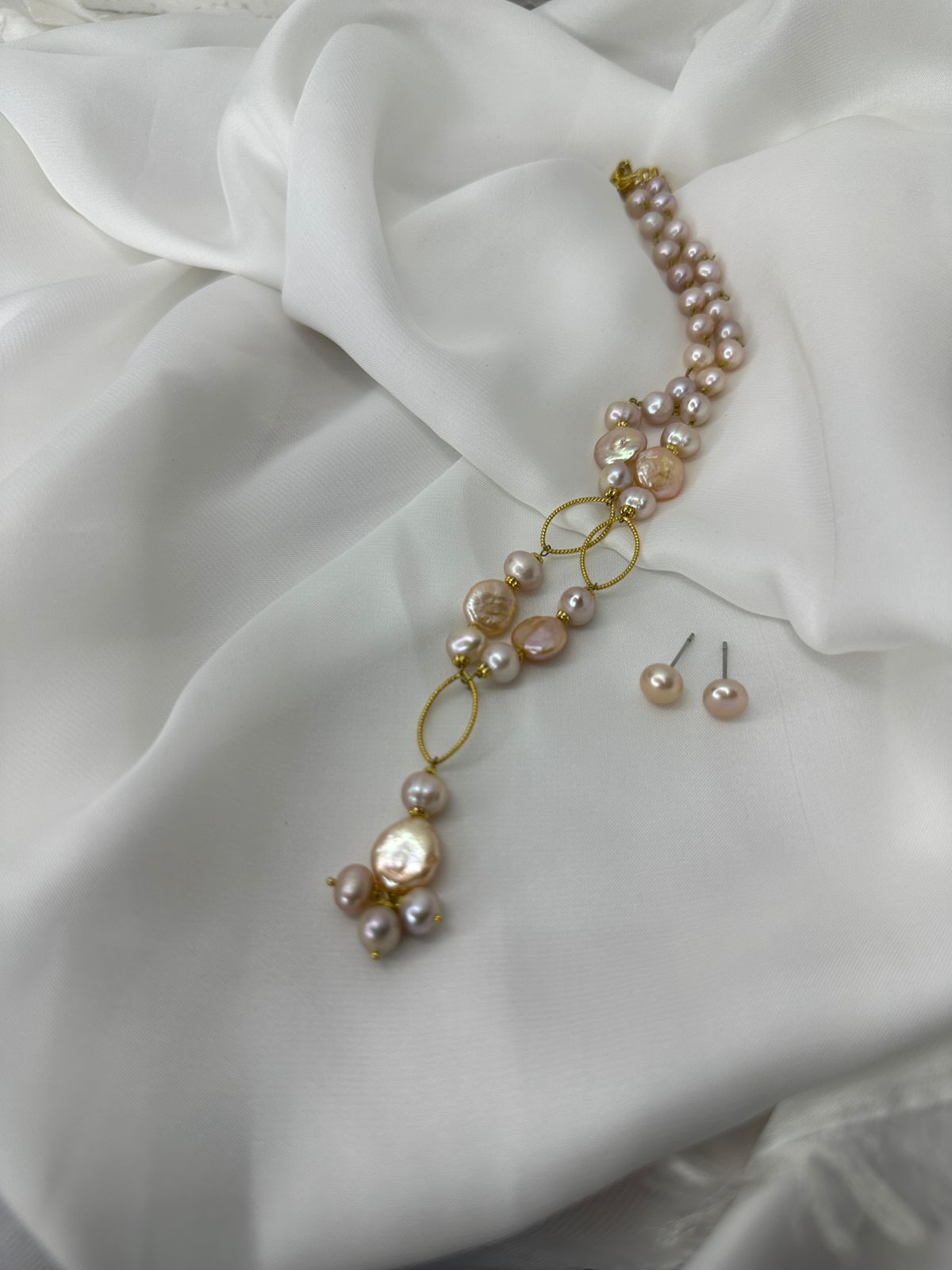 এই নেকলেস সেটে আছে প্রিমিয়াম AAA গ্রেডের জেনুইন ফ্রেশওয়াটার কয়েন ও রাউন্ড পার্ল, ৭–৮ মিমি সাইজে ন্যাচারাল পিংক ও -পার্পল টোনে, ১৮ ইঞ্চি লেন্থে হাতে জোড়া ল্যারিয়াট/Y-ড্রপ ডিজাইনে গোল্ড টোন লিংকসহ।