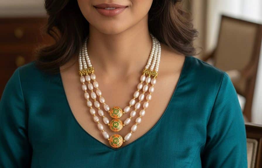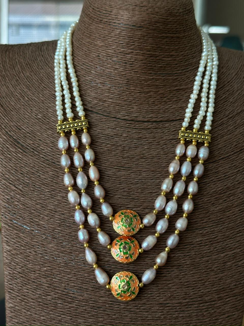 Royal Minakari Pearl Necklace Set | 3-Layer Freshwater JewelryRoyal Minakari Pearl Necklace Set | 3-Layer Freshwater Jewelry