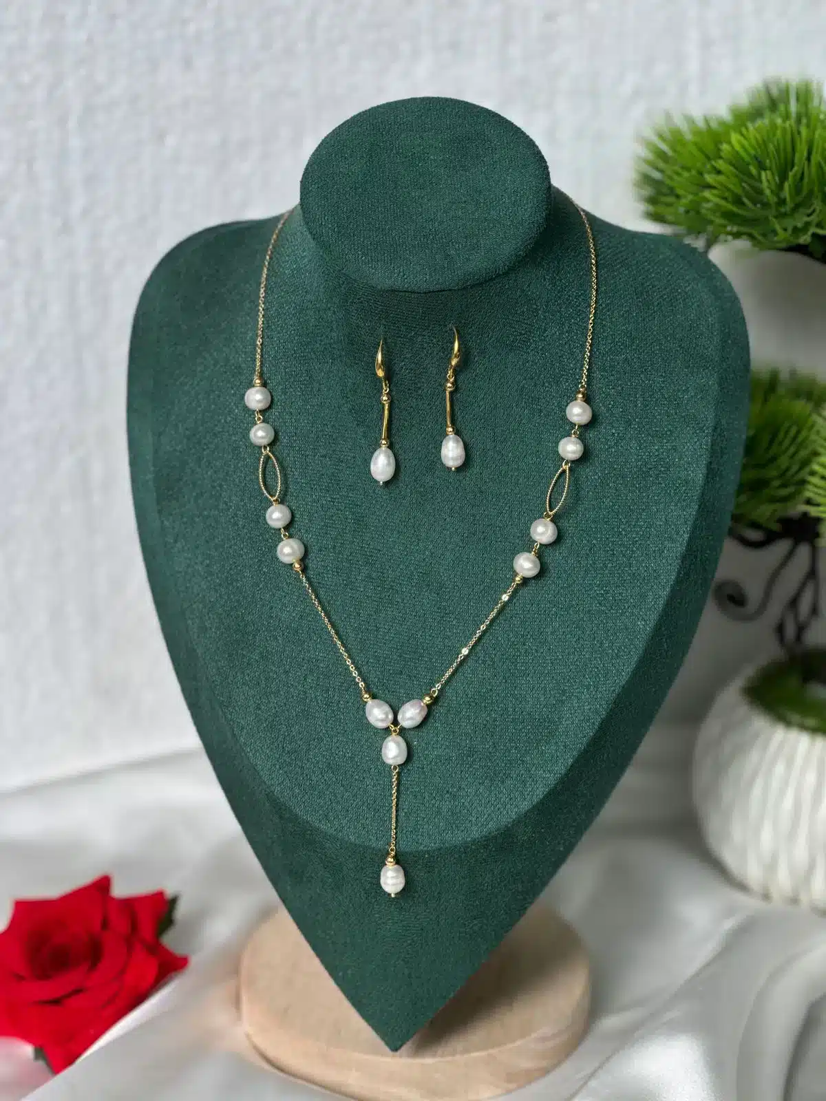 The set includes a 17-inch necklace with a graceful Y-shaped pendant design and matching earrings, combining classic elegance with modern style. Lightweight and comfortable, it is perfect for both daily wear and special occasions.